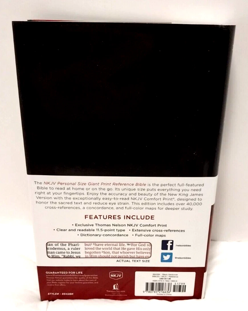 The NKJV Personal Size Giant Print Reference Bible is the perfect full-featured Bible to read at home or on the go. Its unique size puts everything you need right at your fingertips.
