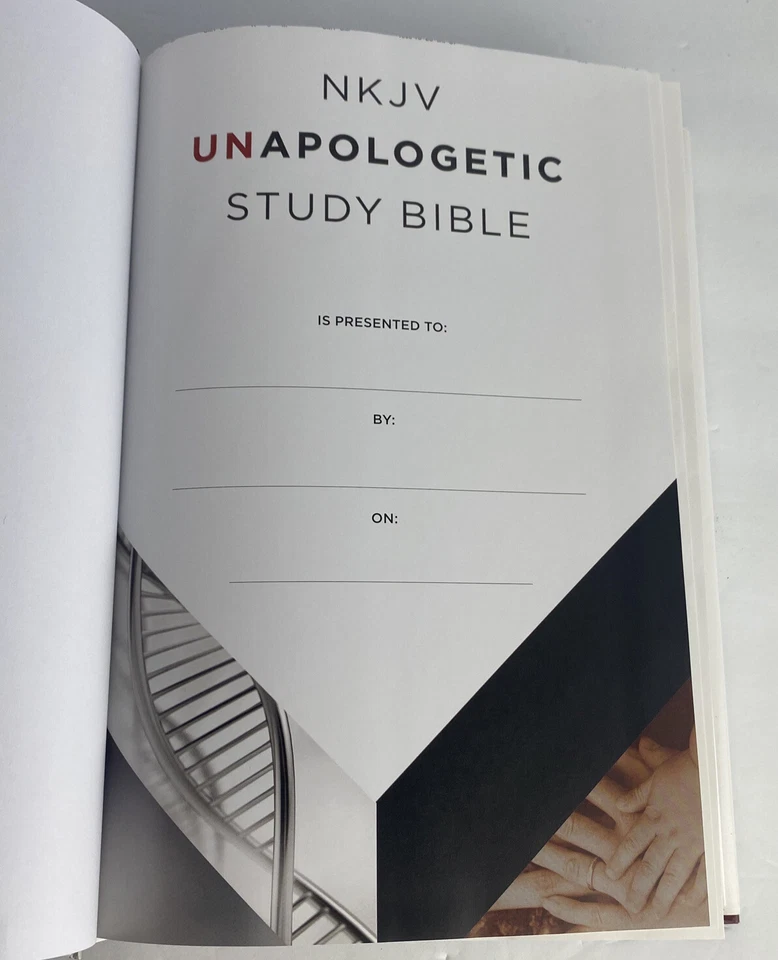 Don’t apologize for what you believe. In an age marked by uncertainty, this unique study Bible has the tools you need to defend your faith—and share it with the people you love., The NKJV Unapologetic Study Bible cuts through the confusion with clear answers for today’s most complicated and controversial issues. With timely articles, thoughtful book introductions, insightful quotations, and profiles on some of history’s most unapologetic defenders of the faith, this is a Bible that won’t leave you guessing. You’ll grow in confidence as you discover how to defend your faith and share it with others in a world increasingly at odds with the truth of God’s Word. The Bible doesn’t shy away from the tough topics, and neither should you. Features Include: Book Introductions: Provide key passages and background information for each book Articles: Over 220 articles placed near relevant Scripture passages bring keen biblical insight to the current issues of the day Quotations: Over 70 quotations from historical figures help you understand, first, that the issues of the day are not new; and second, that wise people throughout history have been challenged to live by biblical standards, just as we are today Unapologetic Profiles: Over 50 profiles of historical figures inspire you with biblical faith lived out in the face of seemingly impossible circumstances Indexes: Categorize each of the above features to assist you in a topical study of the issues that matter to you 8.9-point print size
