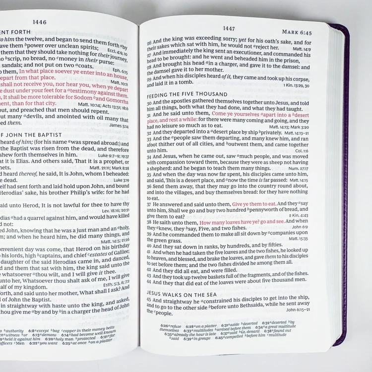 43,000 cross-references at the end of verses allow you to find related passages quickly and easily