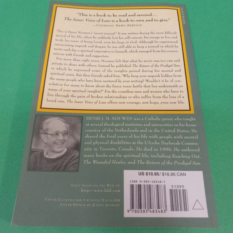 The Inner Voice of Love: A Journey Through Anguish to Freedom is a collection of passages from Henri Nouwen’s journals, written during a period when his self-esteem evaporated, his energy to work disappeared, and God seemed entirely unreal. This is not a book to be read straight through: each short chapter takes time to digest, because, like the following passage, each of Nouwen’s thoughts has the raw complexity of real honesty:Your body needs to be held and to hold, to be touched and to touch. None of these needs is to be despised, denied, or repressed. But you have to keep searching for your body’s deeper need, the need for genuine love. Every time you are able to go beyond the body’s superficial desires for love, you are bringing your body home and moving toward integration and unity.–Michael Joseph Gross
